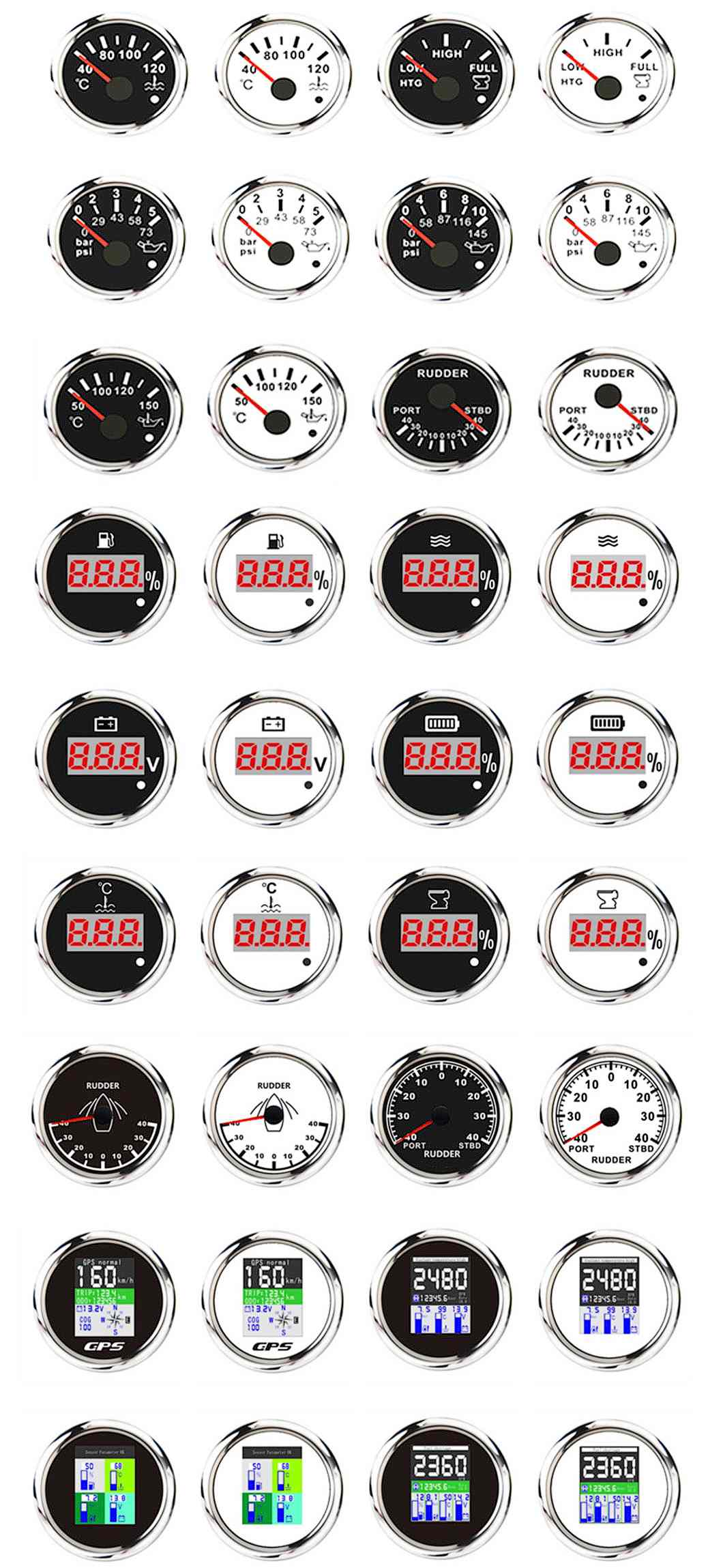 Fuel Gauge GPS 52mm Water Temperature Consumption Tachometer Voltage Pressure Alarm Gauge